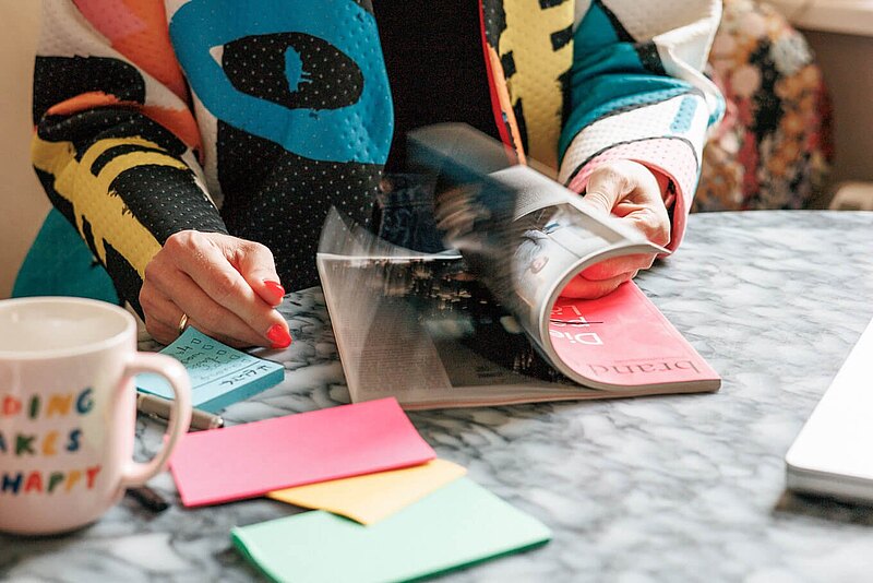 Die Vielfältigkeit von Stefanie als „Schreibcoachin mit Marketingbrille“ und Kreativkopf visuell kommunizieren, um ihre umfassende Expertise und einzigartige Persönlichkeit zu zeigen.