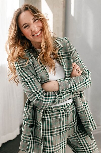 Das Konzept und die Planung des Shootings basierten auf unserer Erfahrung mit Businessfotos für Frauen. Wir nutzten unser Tageslichtstudio in Berlin und verschiedene Outfits, Posen und Hintergründe, um Karolines Vielseitigkeit zu zeigen. Hier sind einige spezifische Themen, die wir bei der Vorbereitung und während des Shootings berücksichtigt haben: