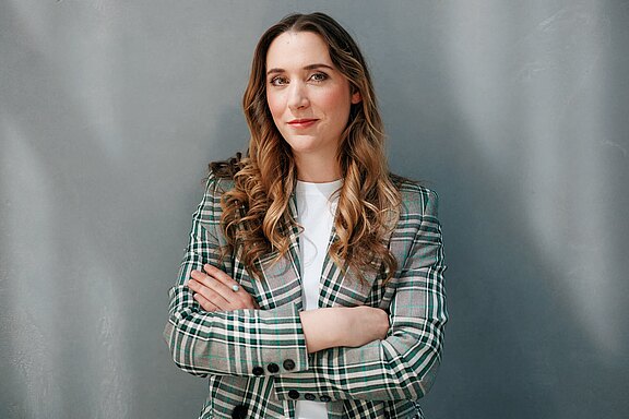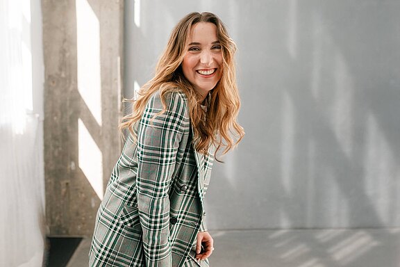 Das Konzept und die Planung des Shootings basierten auf unserer Erfahrung mit Businessfotos für Frauen. Wir nutzten unser Tageslichtstudio in Berlin und verschiedene Outfits, Posen und Hintergründe, um Karolines Vielseitigkeit zu zeigen. Hier sind einige spezifische Themen, die wir bei der Vorbereitung und während des Shootings berücksichtigt haben: